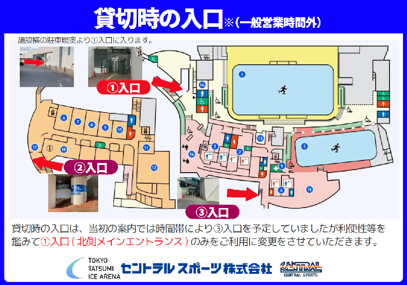 ・専用利用の入場は開始30分前から、退場は終了後45分以内にお願いいたします。
